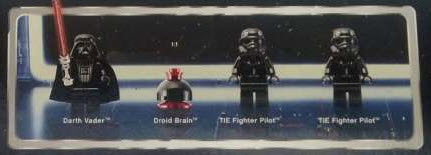 | ACE-6: shown and named "Droid Brain" on the minifigs section (top side) of the box art of set 10131 and therefore a minifig (unlike the later dome-only astromech droids). | |
