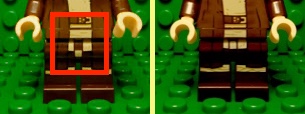 | This variant of the minifigure was released with a 'misprint' in de crotch (picture on the left). This minifigure was released in mass numbers and therefor it is considered to be a variant. | |