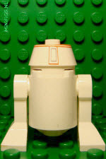 | This minifigure has a close resemblance to R5-D8 from 2012 (left). The only difference is a visible darker red print (right). One variant also has the dashes on top of the dome further away from the center (not in the picture). | |