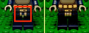 | This (European?) variant of the minifigure was released with a misprint below the belt (picture on the left). This minifigure was released in mass numbers and therefor it is considered to be a variant. | |