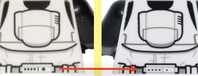 | This variant of the Scout Trooper (on the right) has smaller dots on the back then its predecessor (on the left). | |